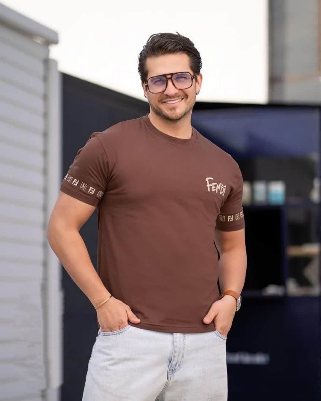 تیشرت مردانه نخ پنبه سوپر یقه گرد طرح فندی fendi (پارچه وارداتی)